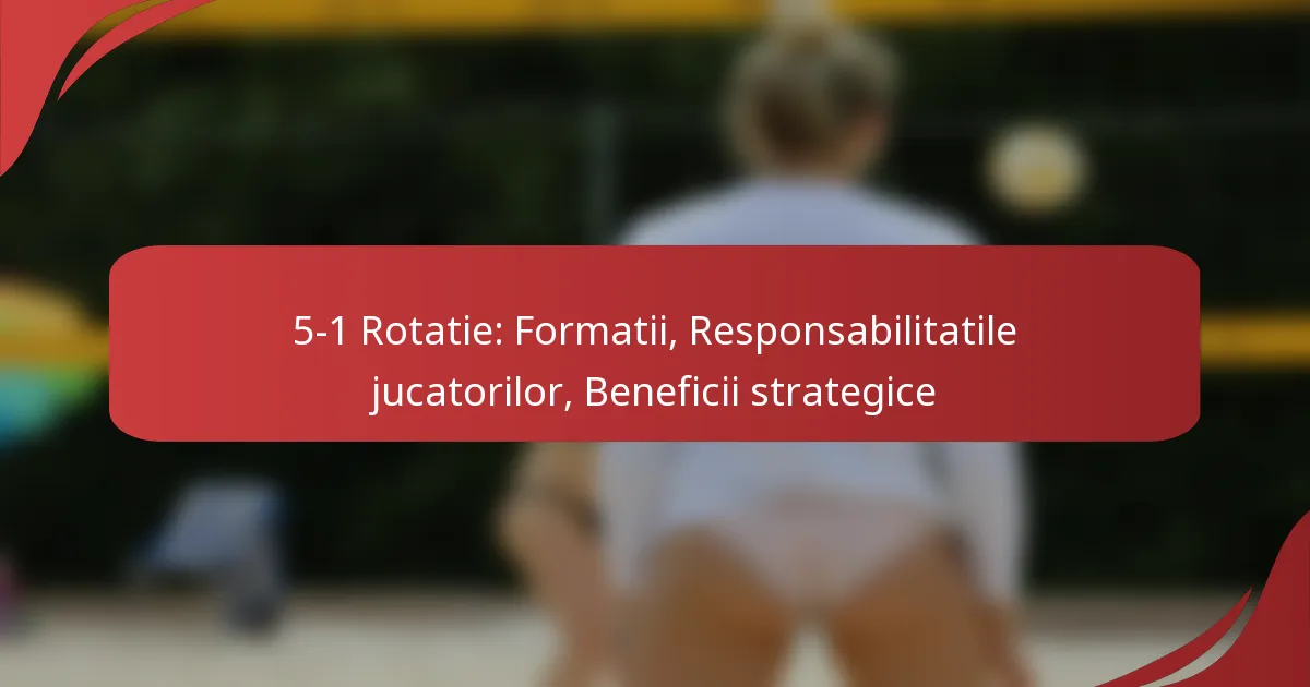 Rotatia 5-1 este o formatie strategica utilizata frecvent in volei, unde cinci jucatori formeaza o linie defensiva si un jucator actioneaza ca organizator. Pentru a implementa eficient aceasta rotatie, echipele trebuie sa inteleaga rolurile jucatorilor, sa mentina o comunicare puternica si sa adapteze strategiile in timpul jocului.