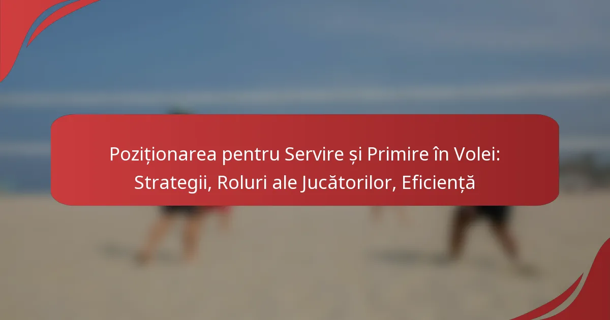 Poziționarea eficientă în primirea serviciului în volei este crucială pentru succesul unei echipe, deoarece implică răspunsuri strategice la diferite tipuri de servicii și puncte forte ale jucătorilor. Fiecare jucător își asumă roluri specifice care îmbunătățesc recepția și facilitează o tranziție lină către atac, în timp ce comunicarea clară este esențială pentru maximizarea eficienței. Prin analizarea metricilor de performanță și a statisticilor meciurilor, echipele pot evalua strategiile lor de primire a serviciului și îmbunătăți performanța generală.