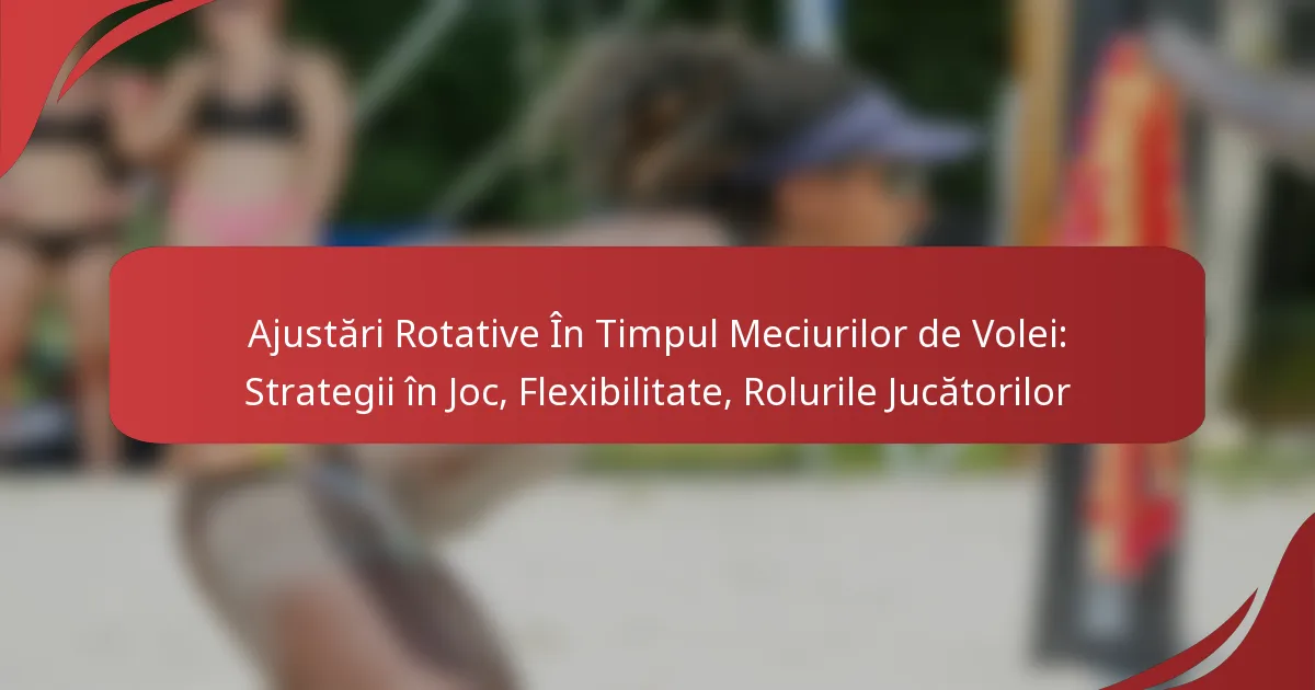 Ajustările de rotație în volei sunt esențiale pentru îmbunătățirea performanței echipei prin schimbarea strategică a pozițiilor jucătorilor în timpul unui meci. Aceste ajustări permit echipelor să se adapteze la punctele forte și slăbiciunile adversarilor, asigurând o acoperire optimă a terenului și oportunități de punctare. Comunicația eficientă și flexibilitatea în rolurile jucătorilor joacă un rol critic în implementarea cu succes a acestor strategii în timpul jocului.