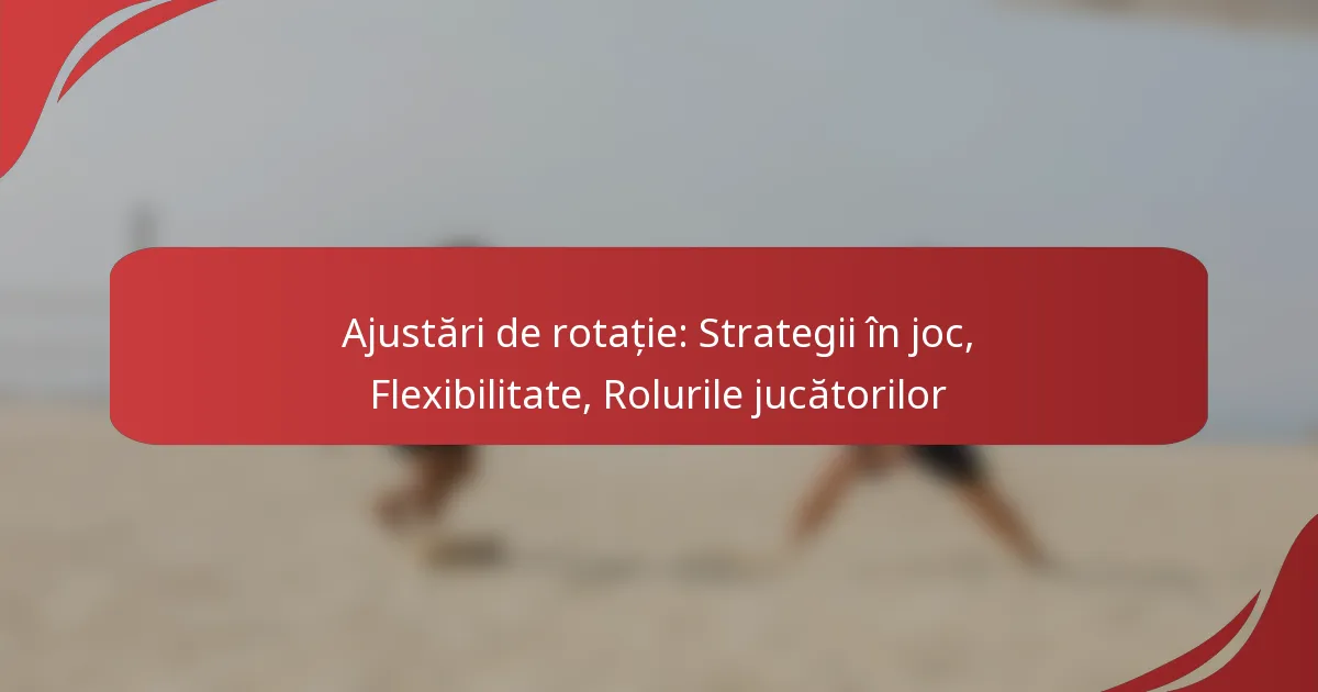 Ajustările de rotație implică modificarea rolurilor și pozițiilor jucătorilor dintr-o echipă pentru a spori sinergia și eficiența. Acest lucru poate include mutarea jucătorilor în diferite linii, schimbarea responsabilităților lor sau modificarea strategiilor în funcție de progresul jocului. Scopul este de a maximiza potențialul echipei prin valorificarea punctelor forte individuale în diverse contexte.