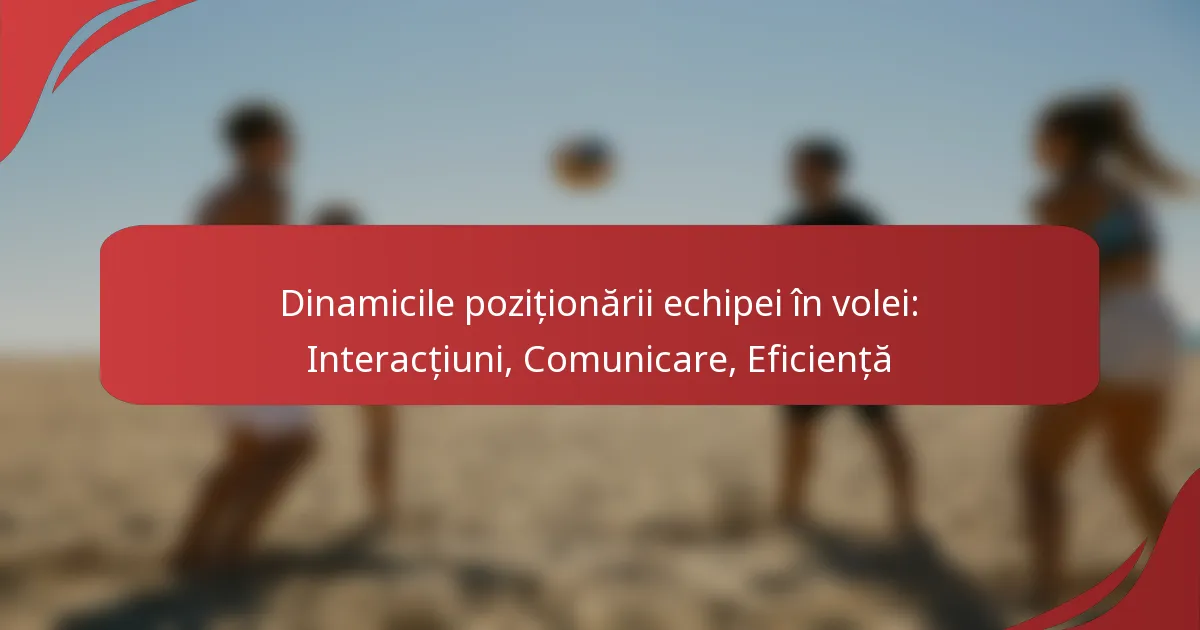 Poziționarea eficientă a echipei în volei depinde de comunicare, adaptabilitate și aliniere strategică. Factorii cheie includ înțelegerea punctelor forte ale fiecărui jucător, menținerea unor interacțiuni clare și ajustarea formațiunilor în funcție de tacticile adversarilor.