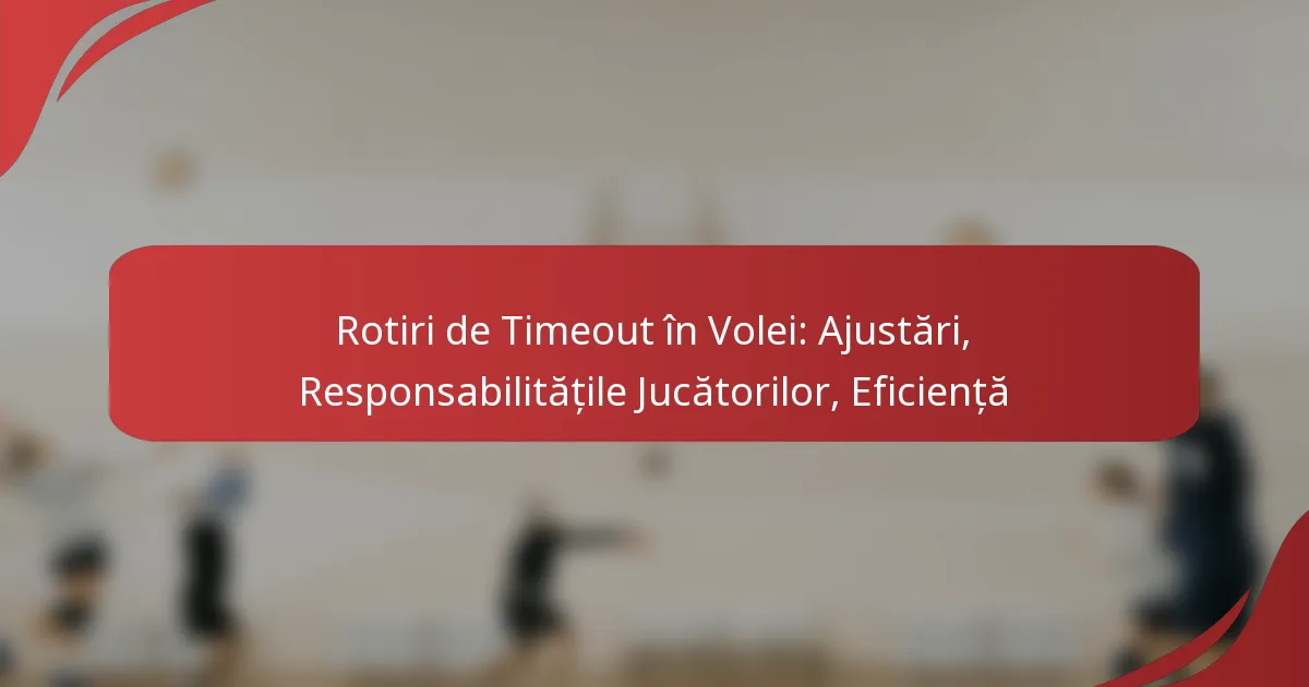 Rotirile de timeout în volei sunt esențiale pentru optimizarea performanței echipei și gestionarea oboselii jucătorilor în timpul unui meci. Aceste ajustări strategice permit antrenorilor să reorganizeze pozițiile jucătorilor și să discute strategii de joc, în timp ce jucătorii își asumă responsabilități specifice pentru a îmbunătăți comunicarea și sprijinul. Prin utilizarea eficientă a rotirilor de timeout, echipele pot aborda provocările imediate și îmbunătăți eficiența generală pe teren.